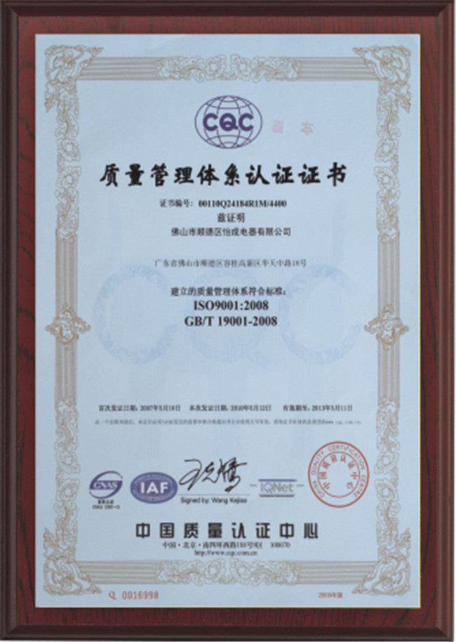 企業(yè)通過IS09001:2000國際體系認(rèn)證,并全面嚴(yán)格按照IS09001:2000體系進(jìn)行運(yùn)營管理。企業(yè)是中國土木工程學(xué)會燃?xì)夥謺T單位、廣東家電商會會員單位、順德燃?xì)饩呱虝T單位、順德家電商會會員單位,公司是國家出口產(chǎn)品二類企業(yè),公司主要產(chǎn)品出口北美和歐洲地區(qū),公司一貫堅持質(zhì)量、信譽(yù)至上...